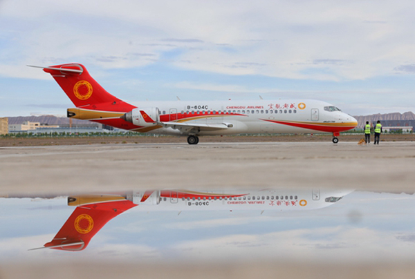 成都航空自去年6月在新疆开启规模化运营,一年多来,已在新疆以吐鲁番、伊宁、喀什为基地,投运9架ARJ21飞机,开通43条“环飞、串飞”航线,覆盖新疆23个机场,覆盖率达92%,逐渐形成了便捷通达的“边疆快线”网络。