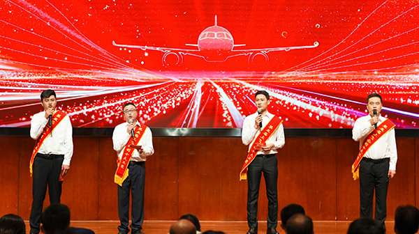 罗晓向所有获得表彰的工匠和先进表示祝贺,向大家的辛勤付出和每一位拼搏奋进的大飞机产业工人致以崇高的敬意和衷心的感谢。罗晓指出,工匠精神是大飞机产业工人宝贵的精神财富,是我们的优良传统,彰显了意志品格,蕴含了创新意识,是大飞机人安身立命的根本。